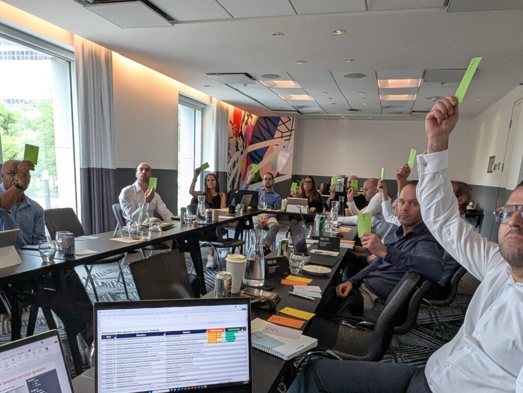 L’approche adoptée combinait réflexions stratégiques avec la haute direction pour assurer l’alignement avec la mission de mobilité durable de CAA-Québec, et accompagnement opérationnel des équipes projets pour développer les compétences méthodologiques internes.